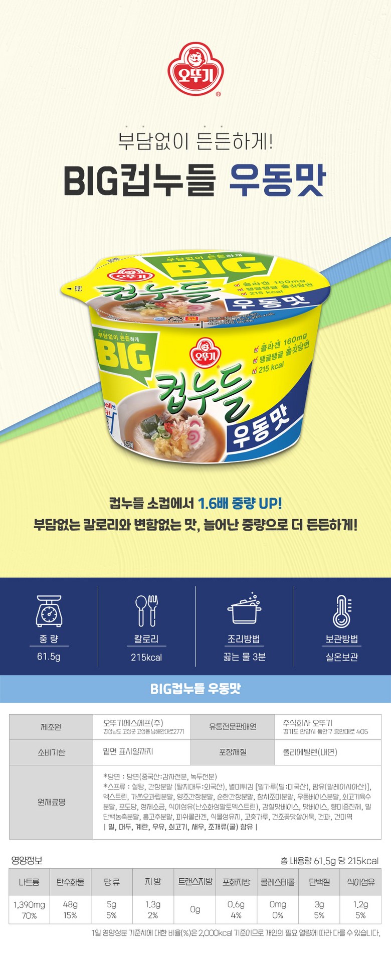 오뚜기 BIG 컵누들 우동맛 X 12개, 1박스