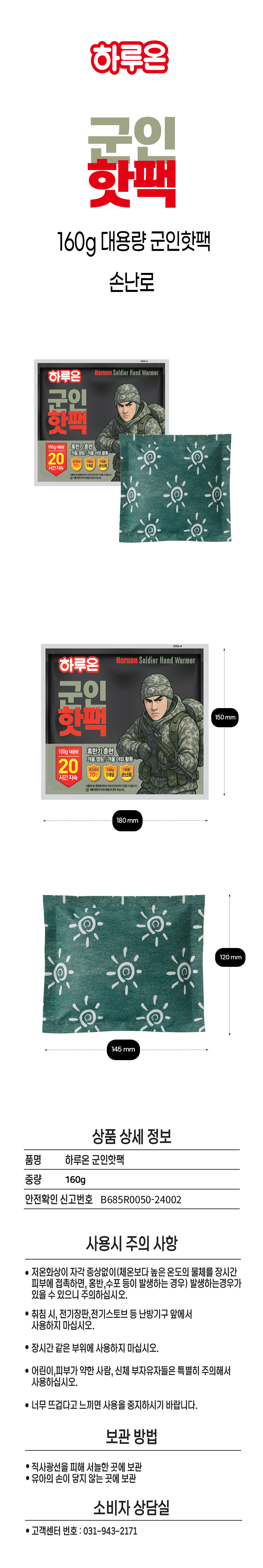 하루온 군인핫팩 160g, 30개