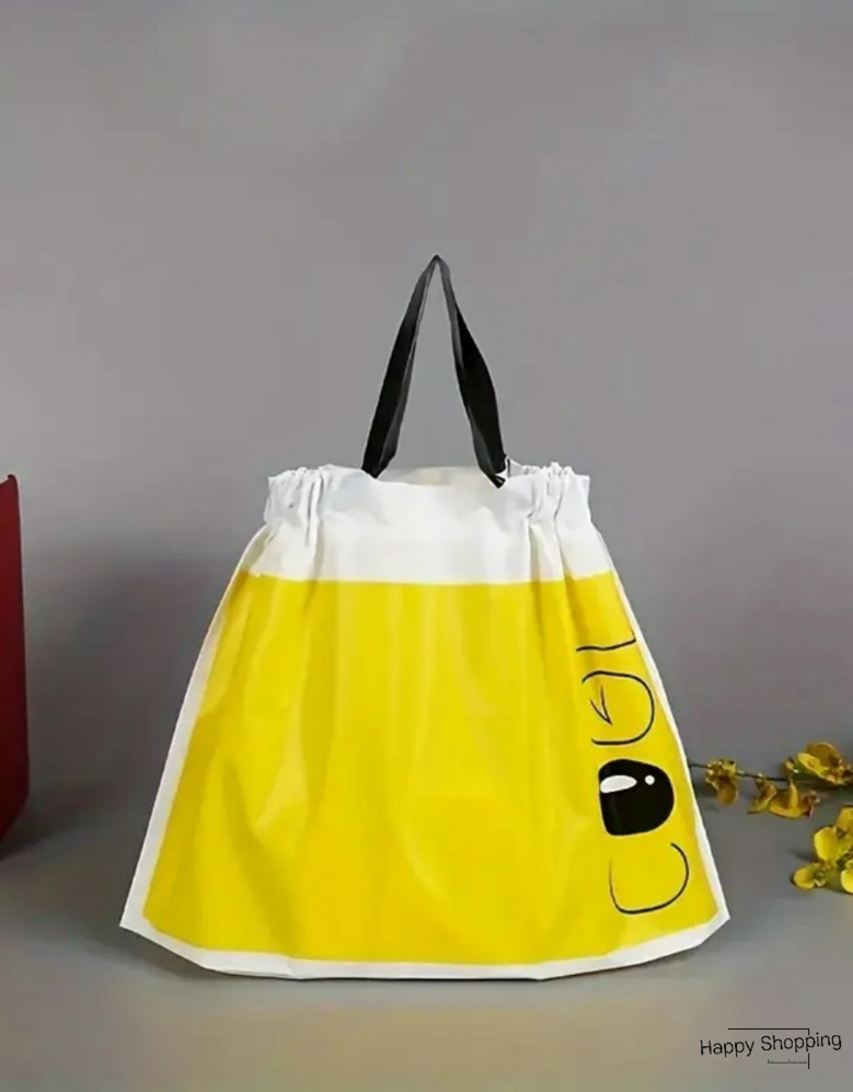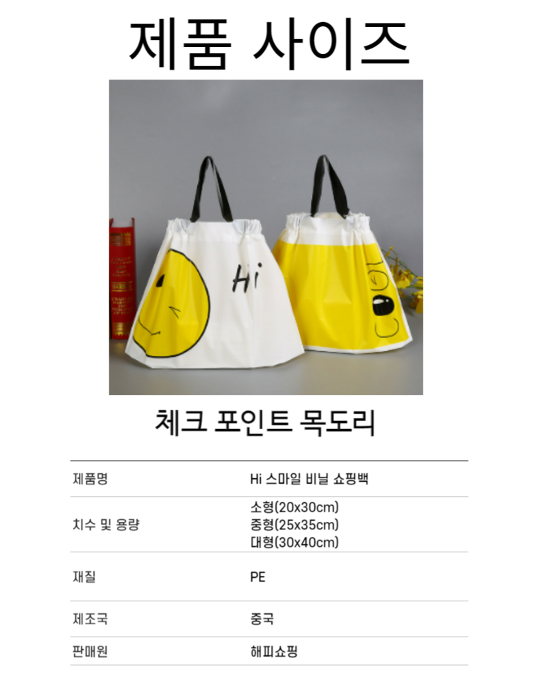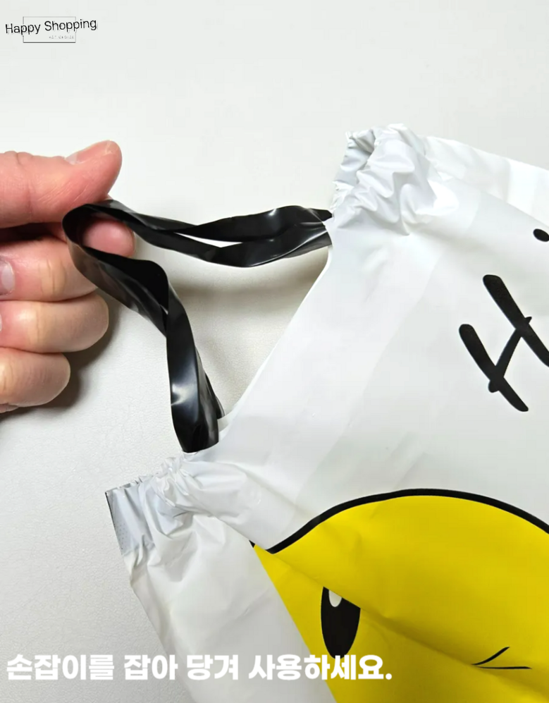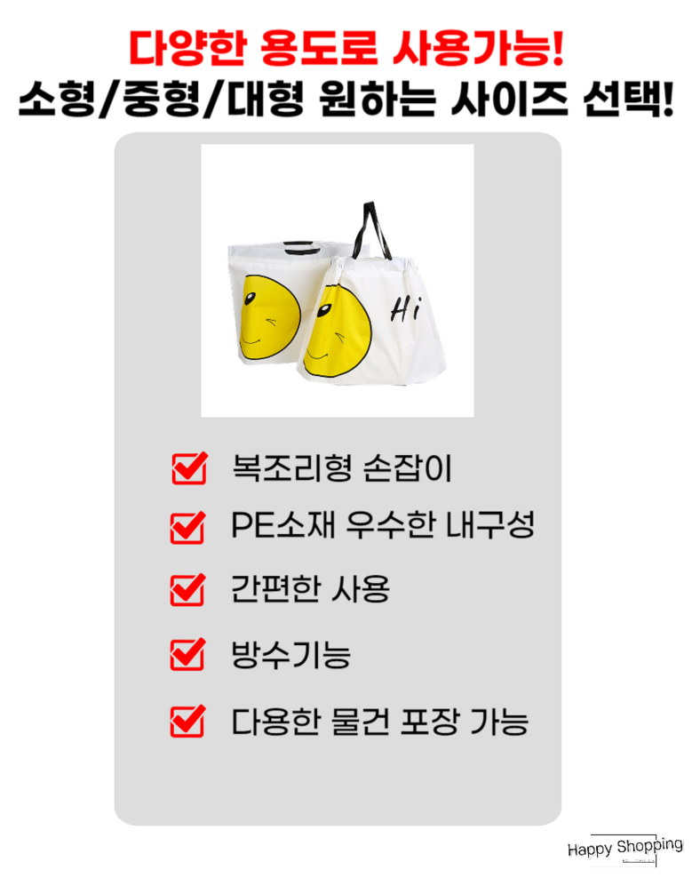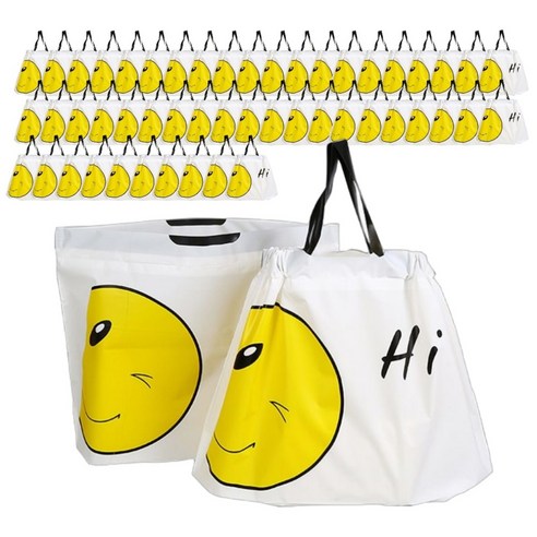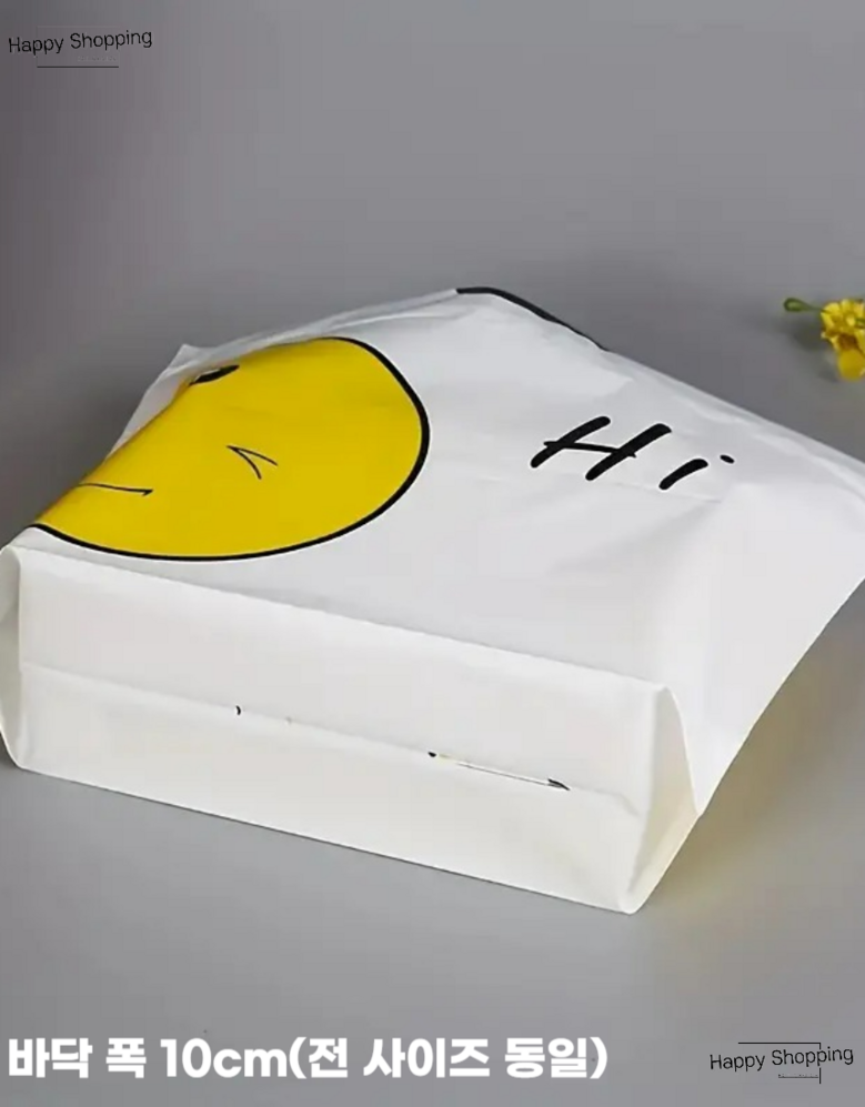 해피쇼핑 스마일 선물 포장 비닐 반투명 봉투 손잡이 쇼핑백 복주머니 간식 테이크아웃봉투, 50개